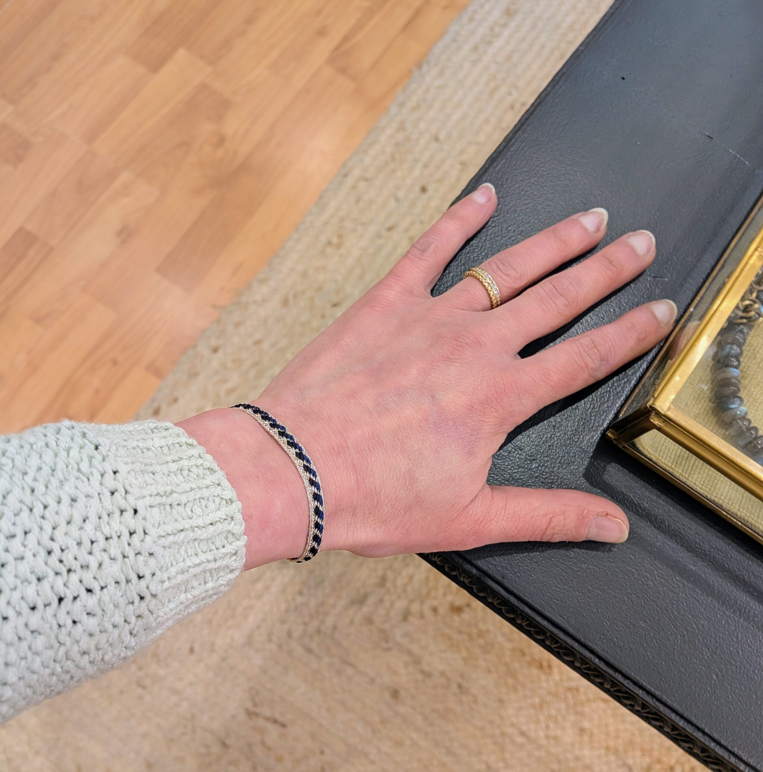 Bracelet en fils de soie, travail fait main en atelier sur Paris, finitions délicates