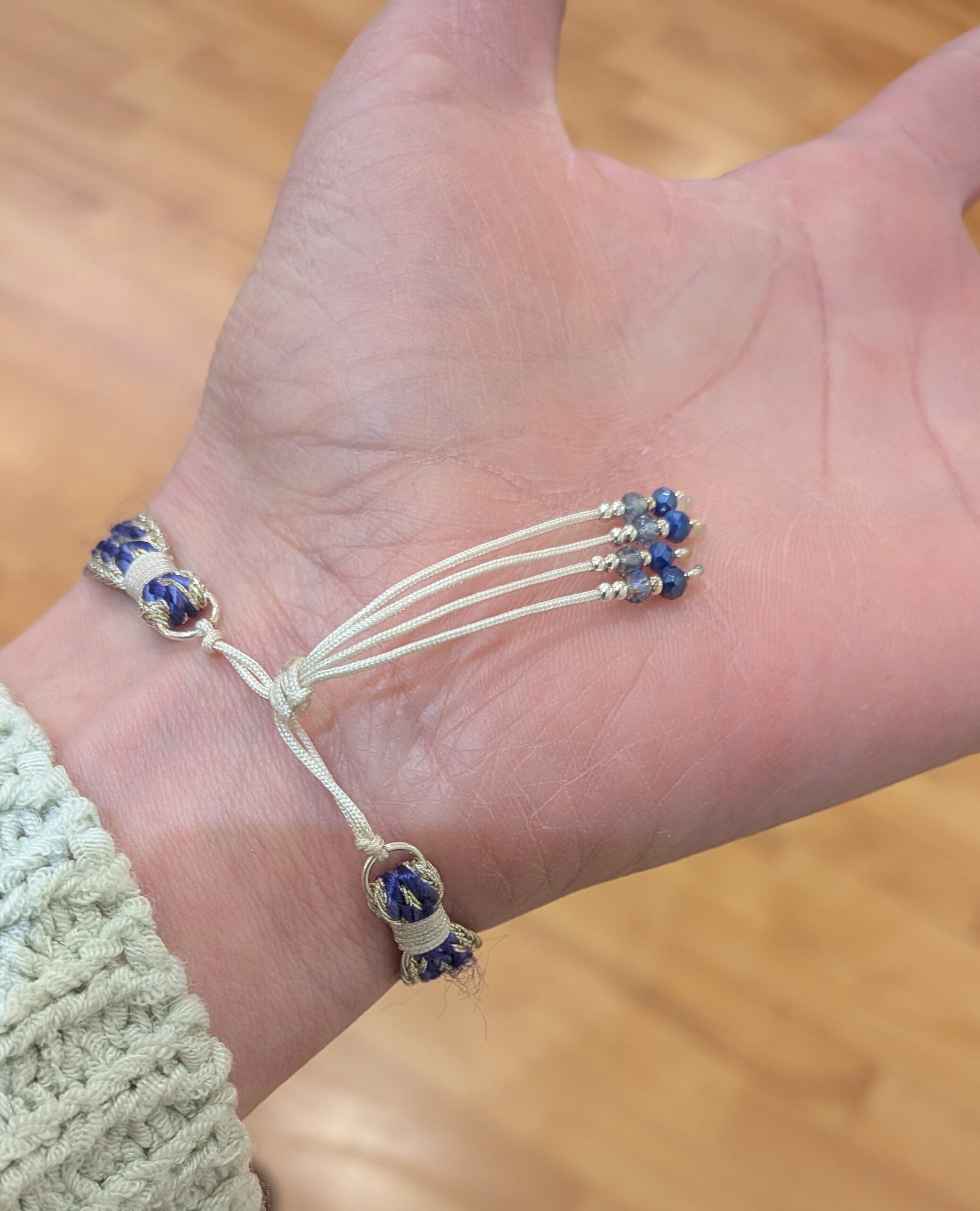 Bracelet en fils de soie ajustable avec un nœud coulissant, fait main en atelier à Paris