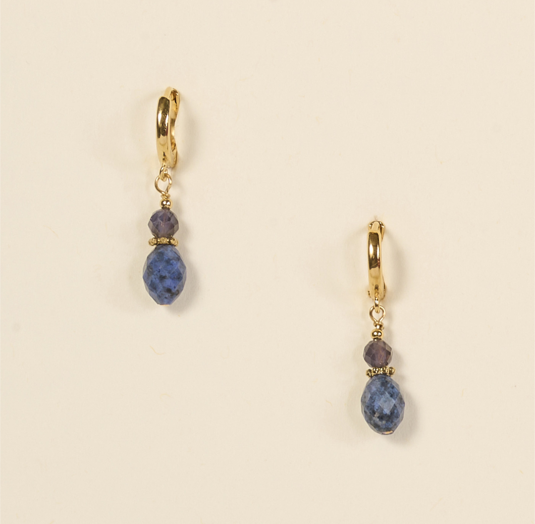 Les boucles d’oreilles Ciri se distinguent par leur finesse et leur délicatesse. Elles associent une perle ovale facettée à une perle ronde, toutes deux en lapis-lazuli, pour un jeu d’éclats subtil et lumineux.