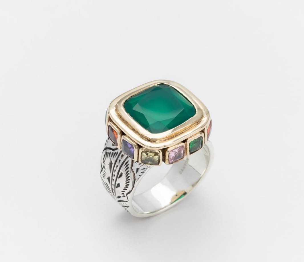 Bague carrée en argent massif 925 et laiton brossé