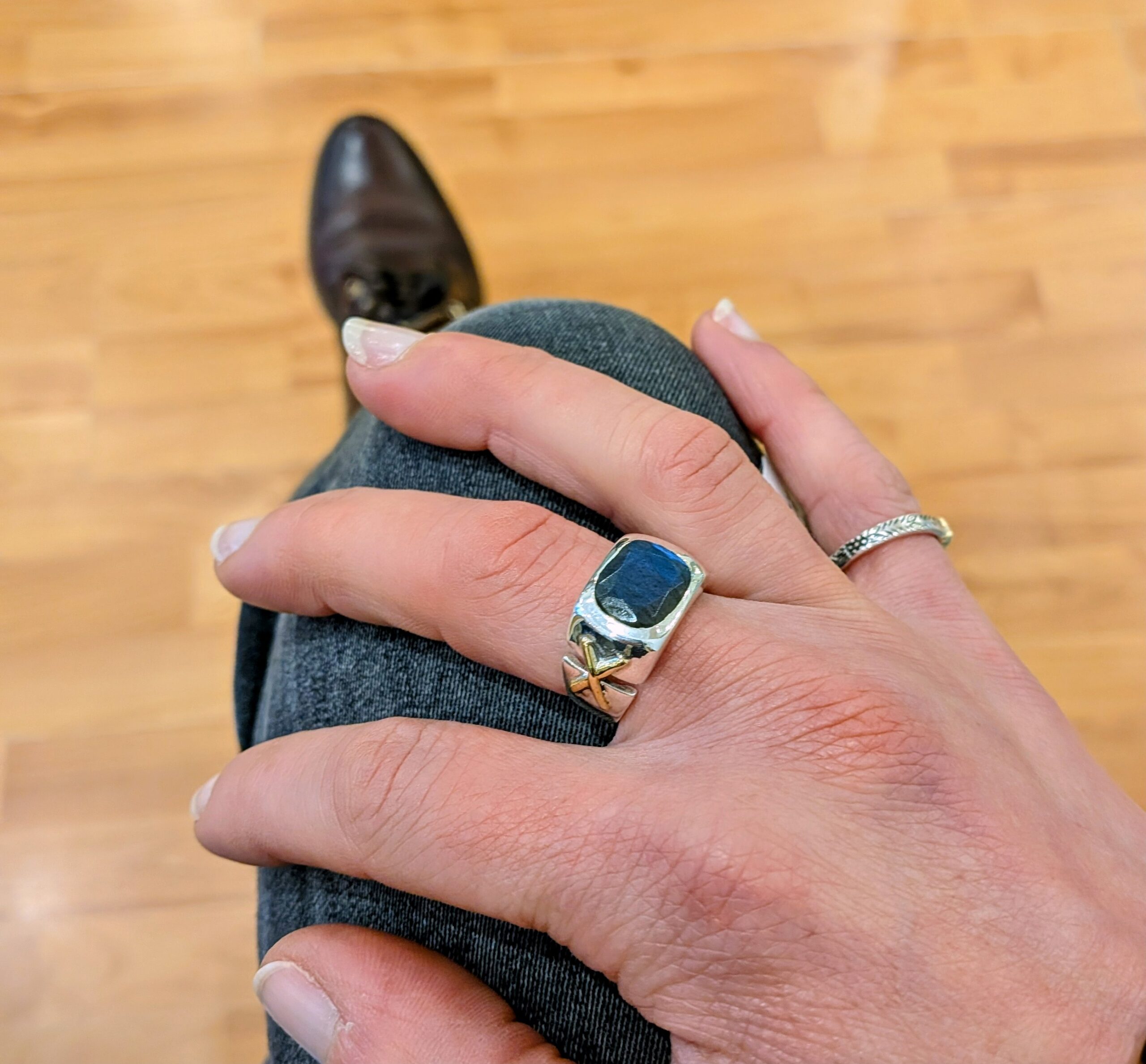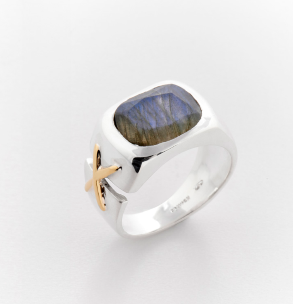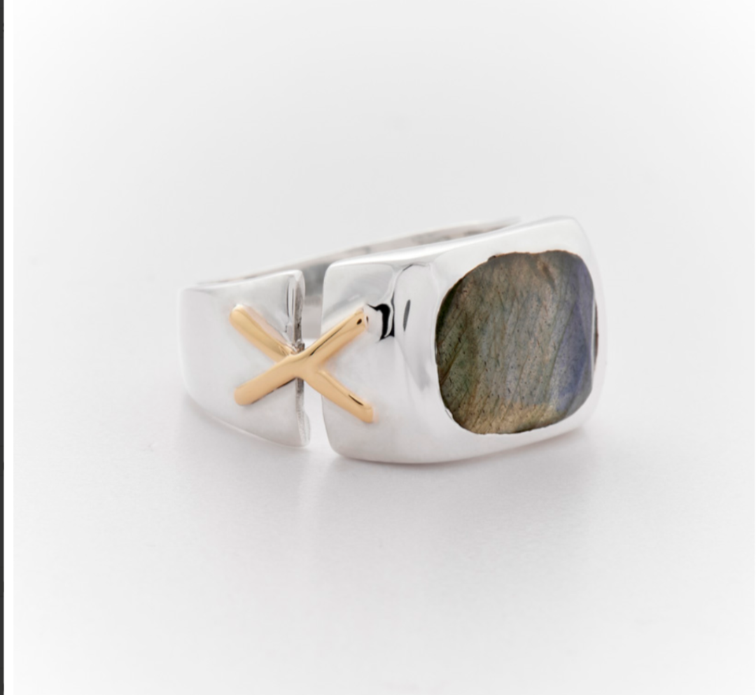 Bague en Argent massif 925 et croix en laiton brossé sur le côté
