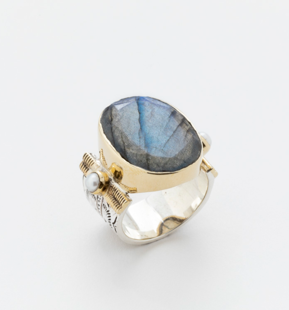 Pierre Naturelle de Labradorite et perles de nacre