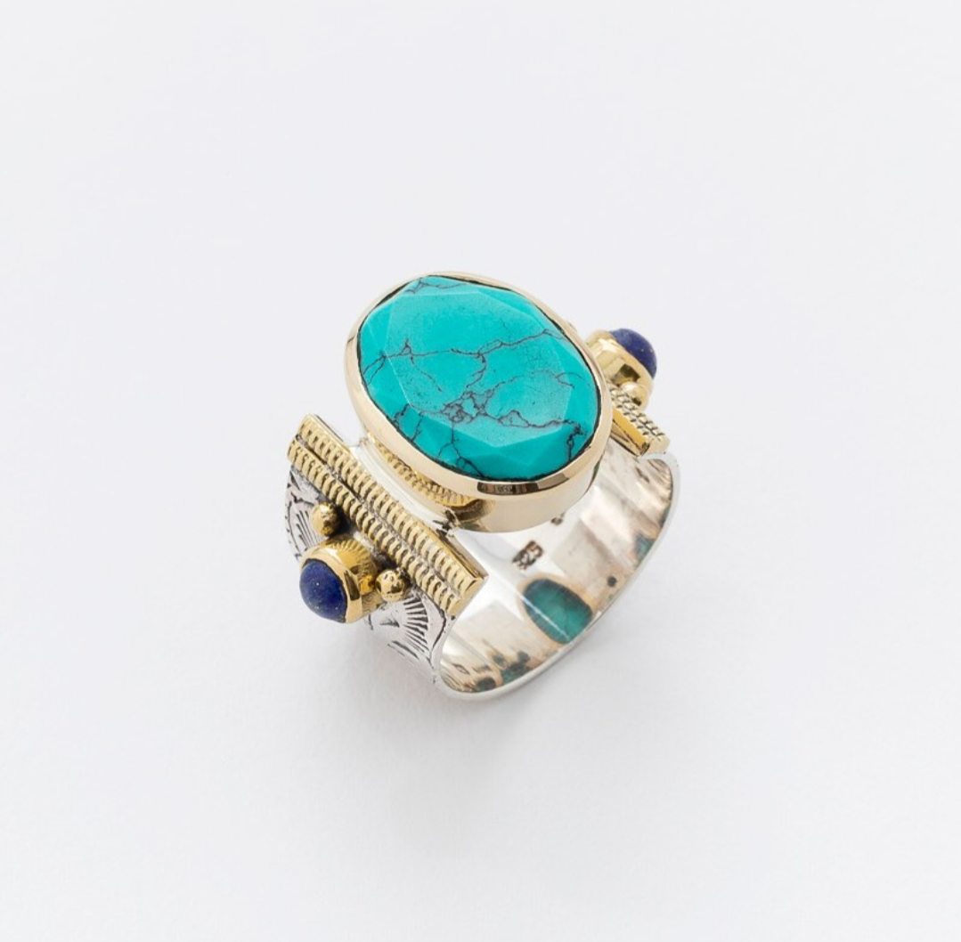 Pierre naturelle de Turquoise et perles de Lapis Lazuli