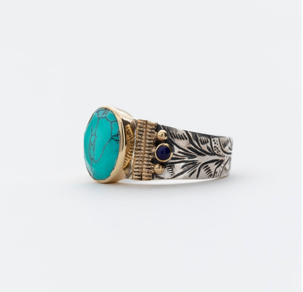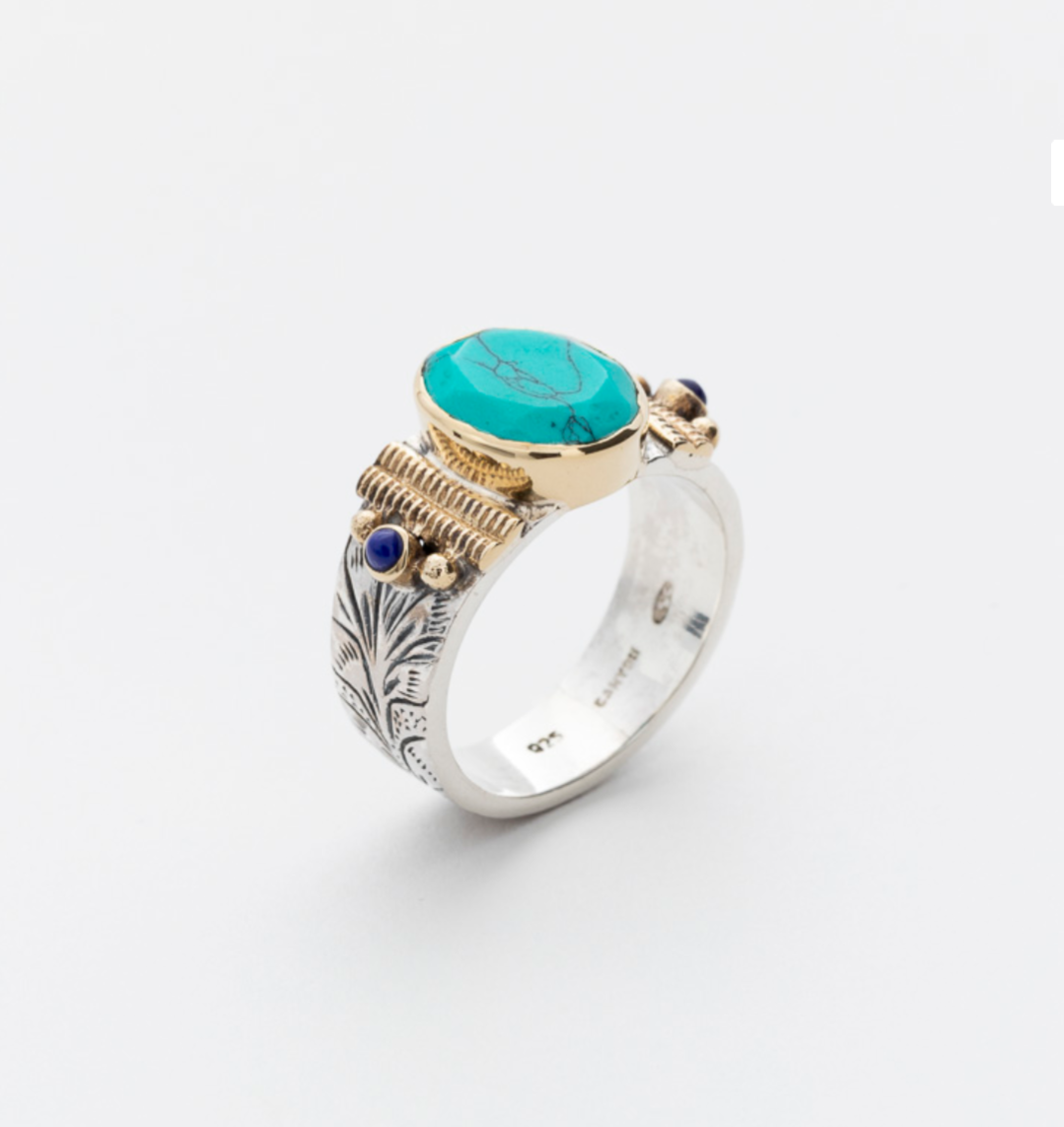 Pierre naturelle de Turquoise et perles en Lapis Lazuli