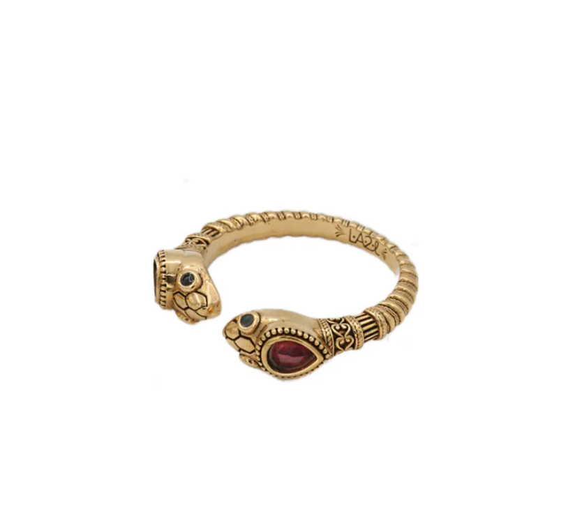 Bague double têtes de serpent en nacre ou Grenat