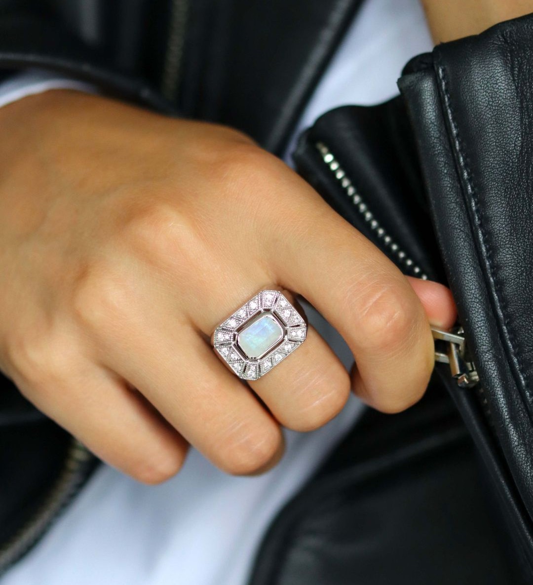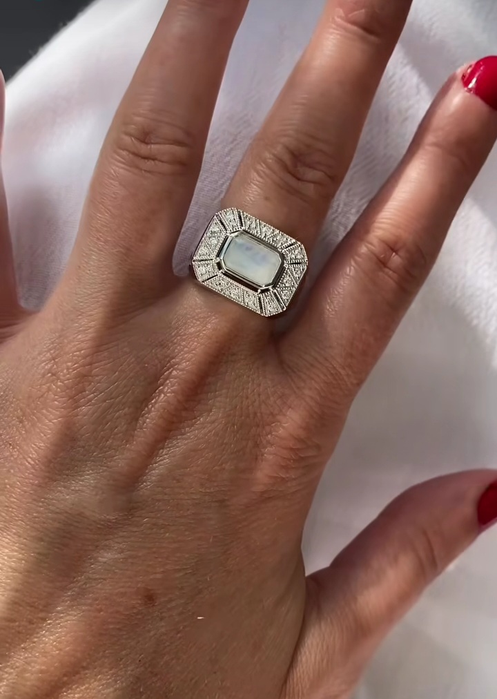 Pierre naturelle au centre de Pierre de lune entourée de cristal de zirconium
