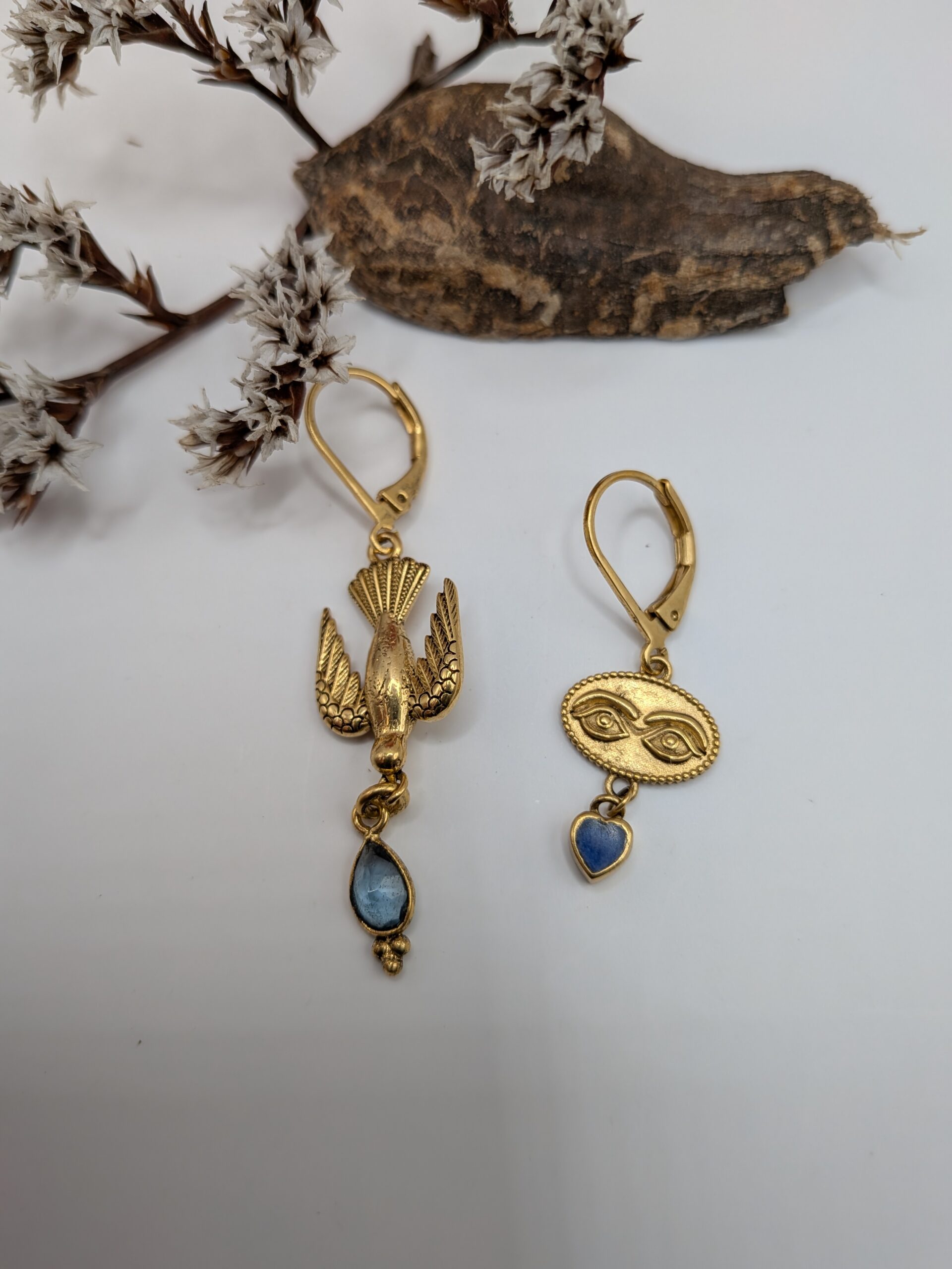 Asymétriques avec 1 oiseau sur une boucle et 2 yeux sur l’autre