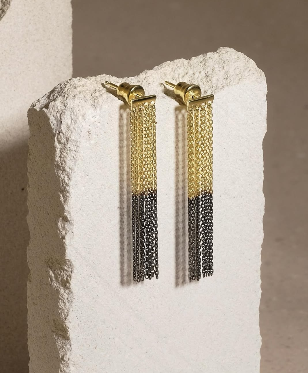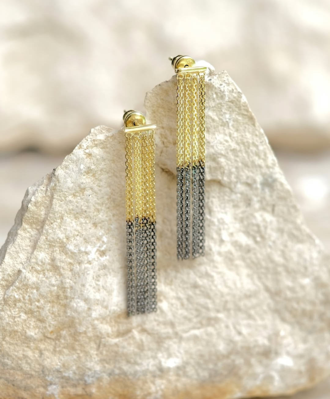 Boucles d’oreilles bicolores en fils d’argent baignés d’or et de ruthénium
