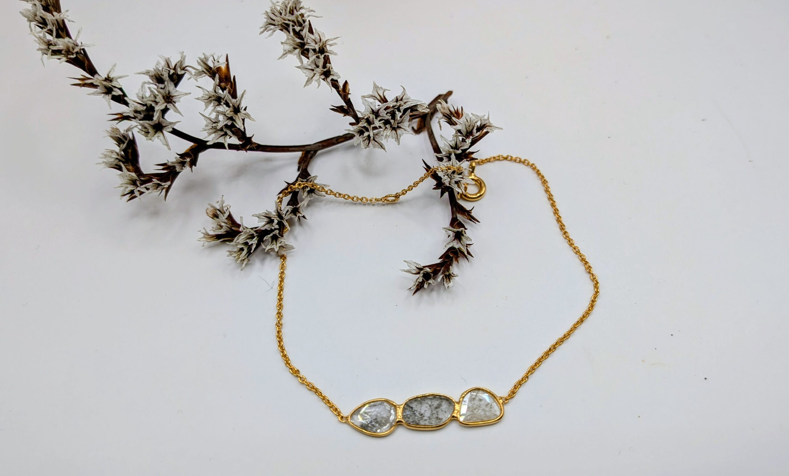 3 Polkis (diamants brut tranchés) aux reflets nacrés