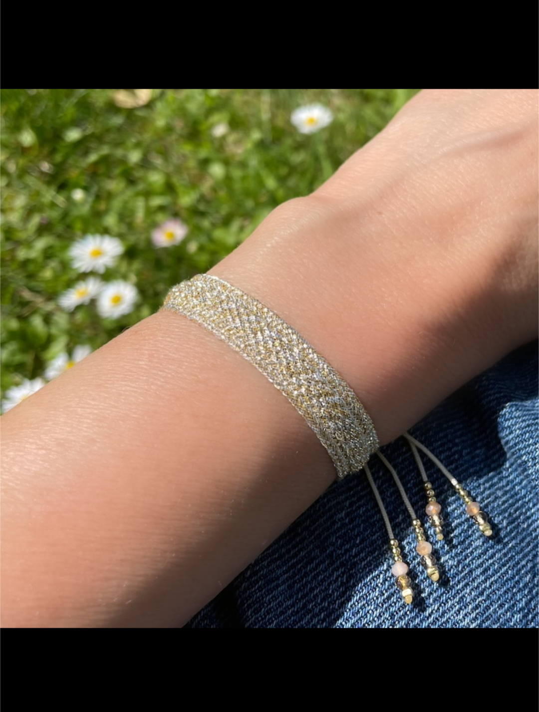 Fermoir coulissant aux finitions délicates en perles de cristal.
