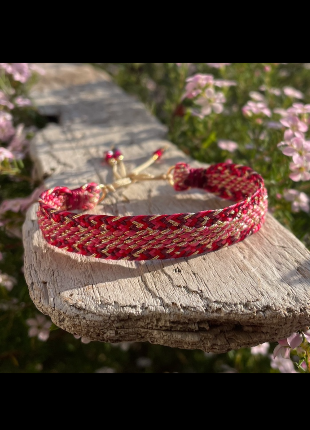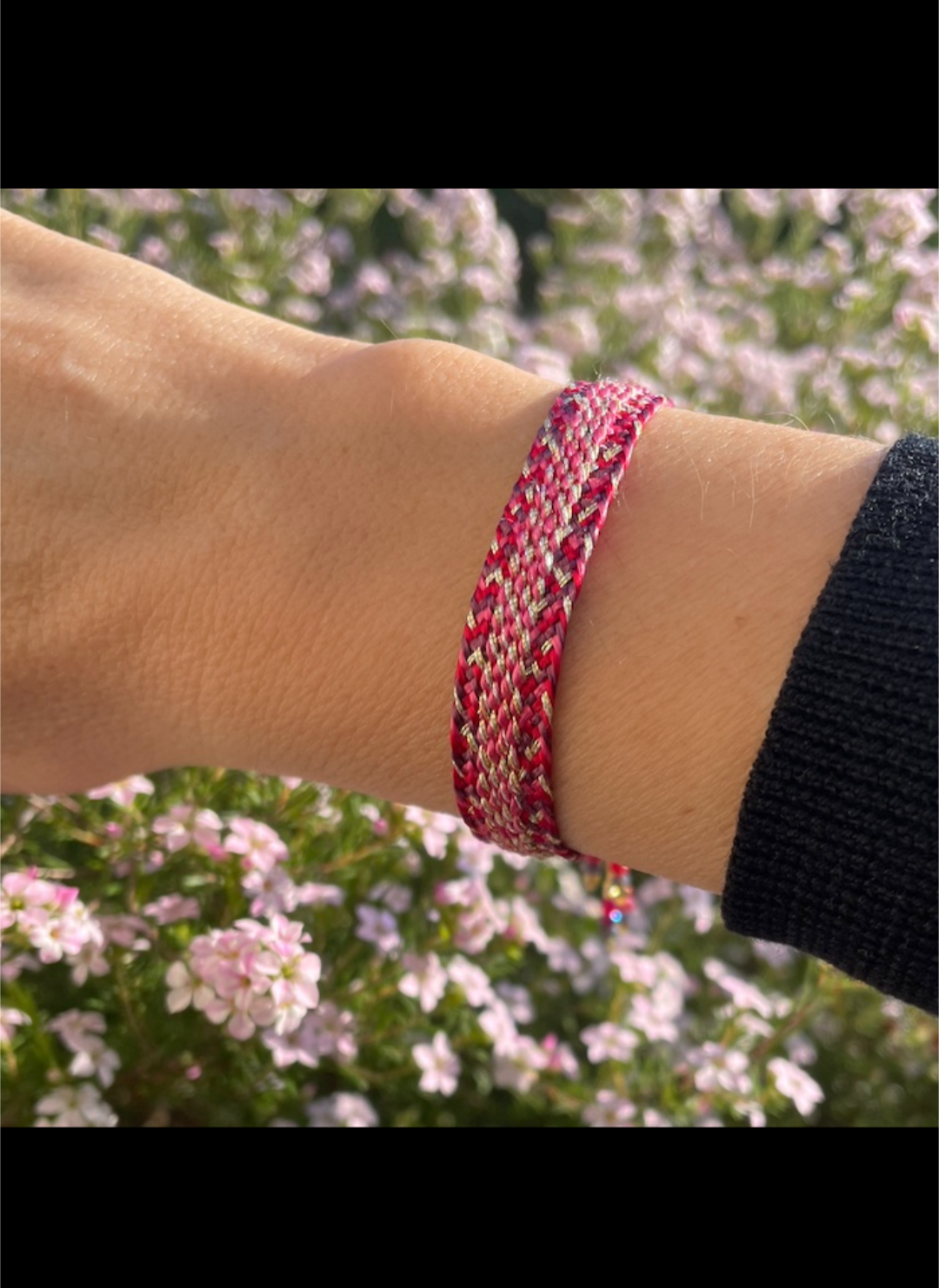 Bracelet en fils de soie dorés et argentés avec un fermoir coulissant aux finitions délicates en perles de cristal.