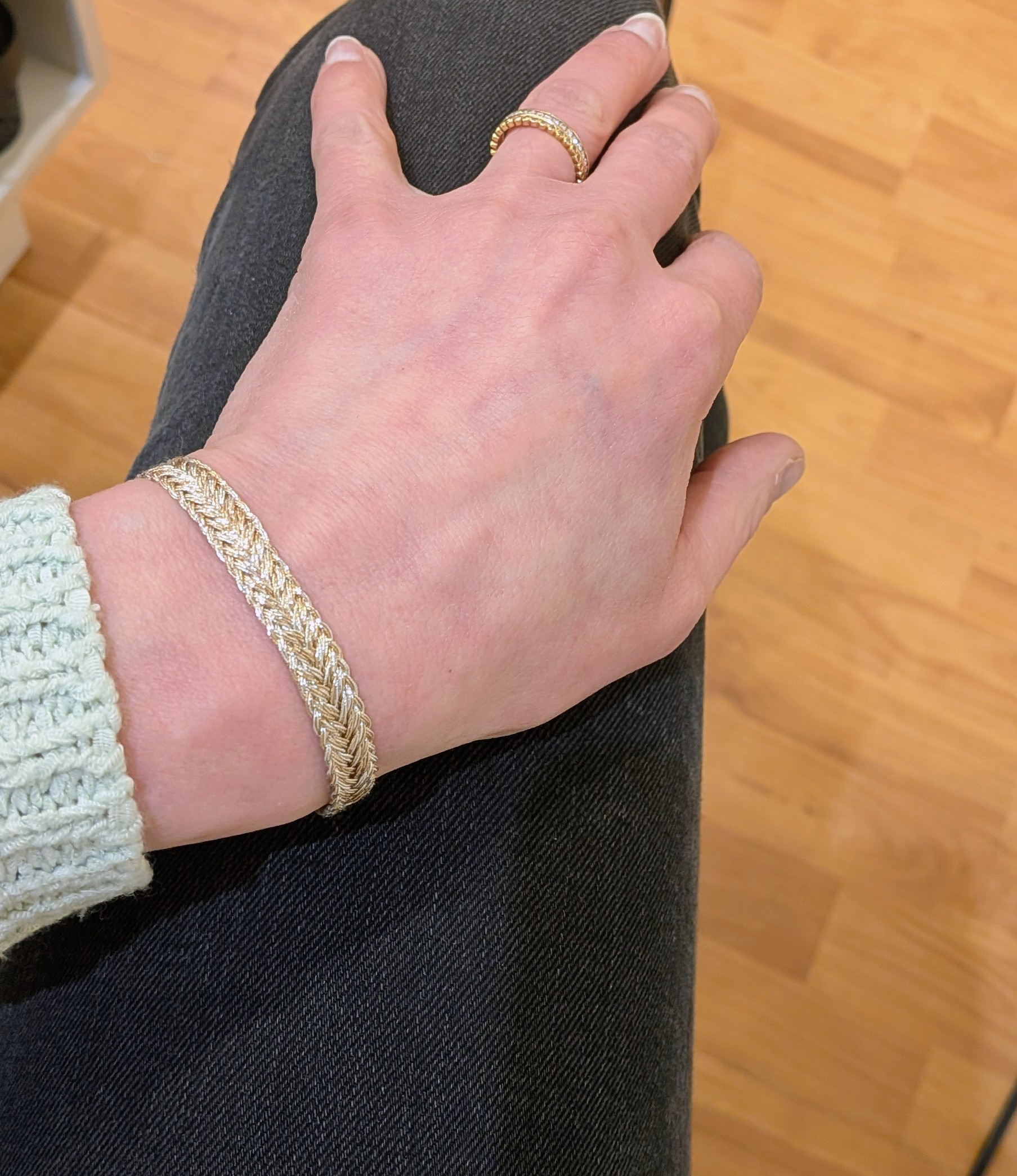 Soyez le premier à laisser votre avis sur “Bracelet en fils de soie tressé doré”
