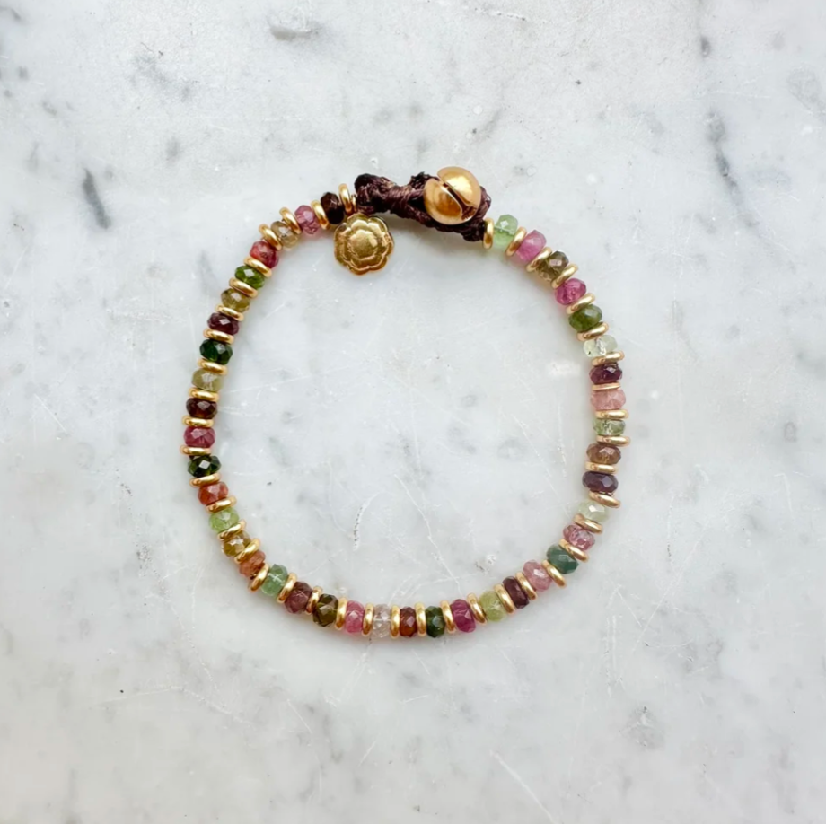 Bracelet en tourmaline multicolore et vermeil (5 microns d’or)