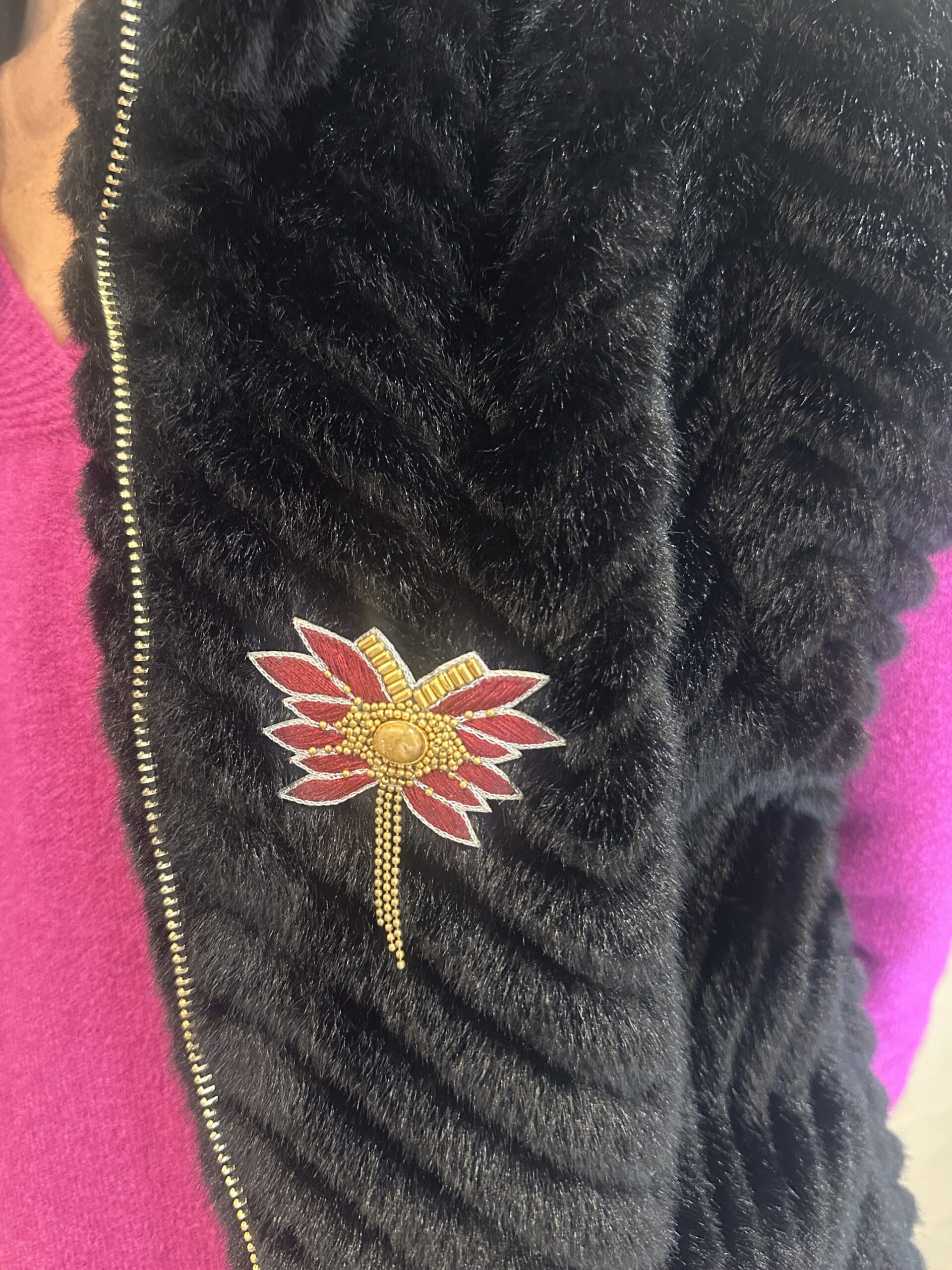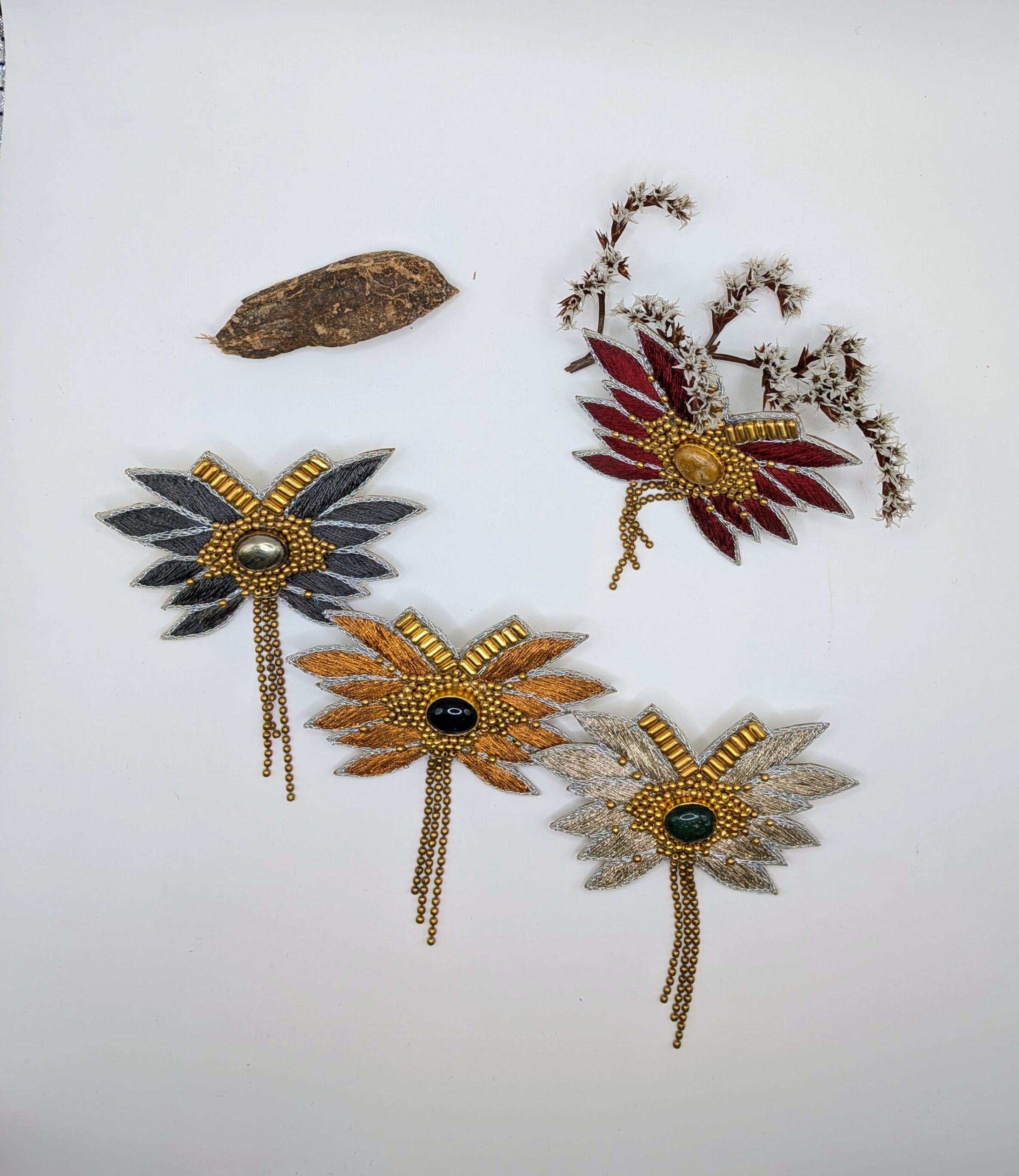 Broche brodée avec du fil de soie,