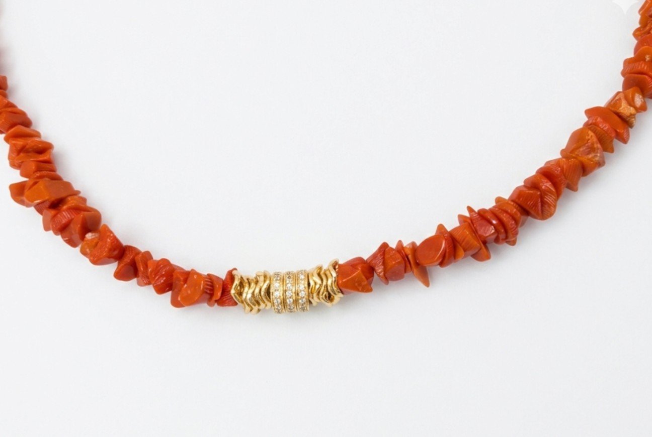 Collier en Corail rouge d’élevage en méditerranée, vermeil et zirconium