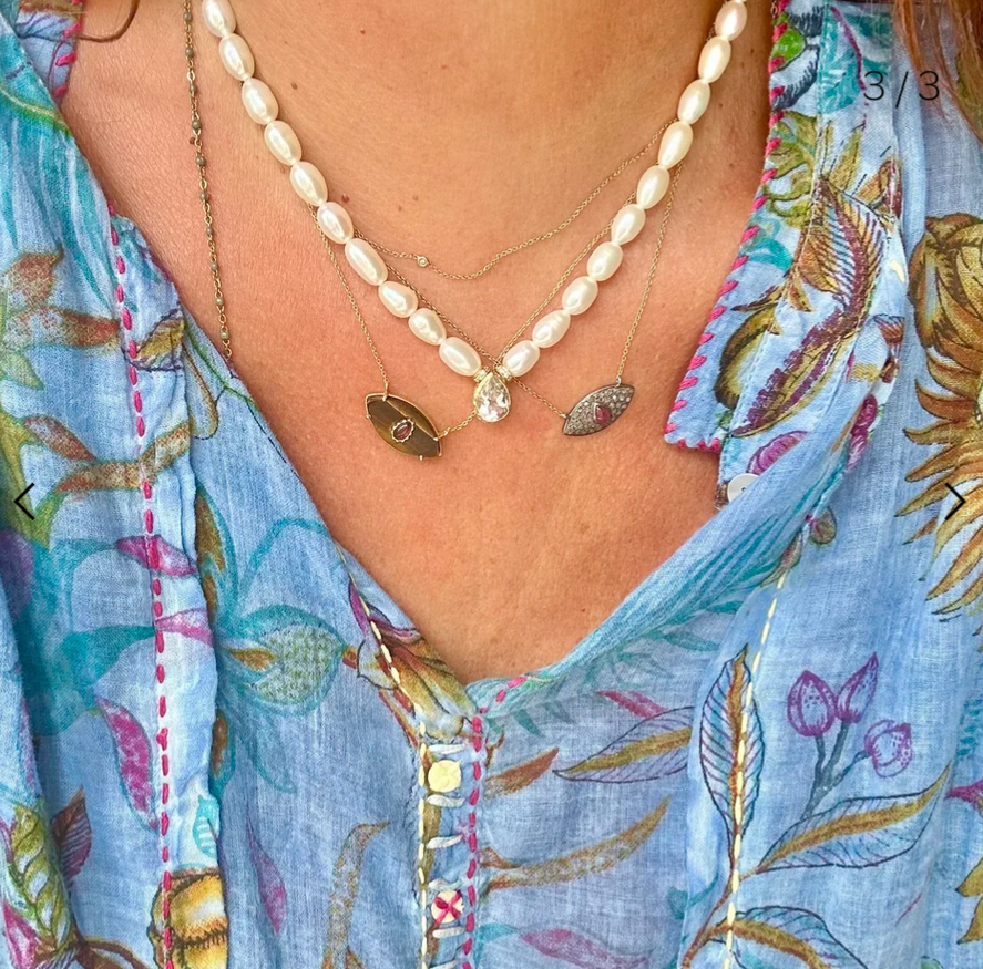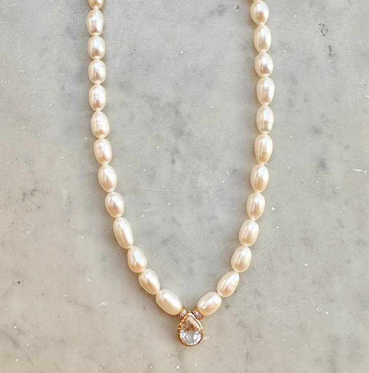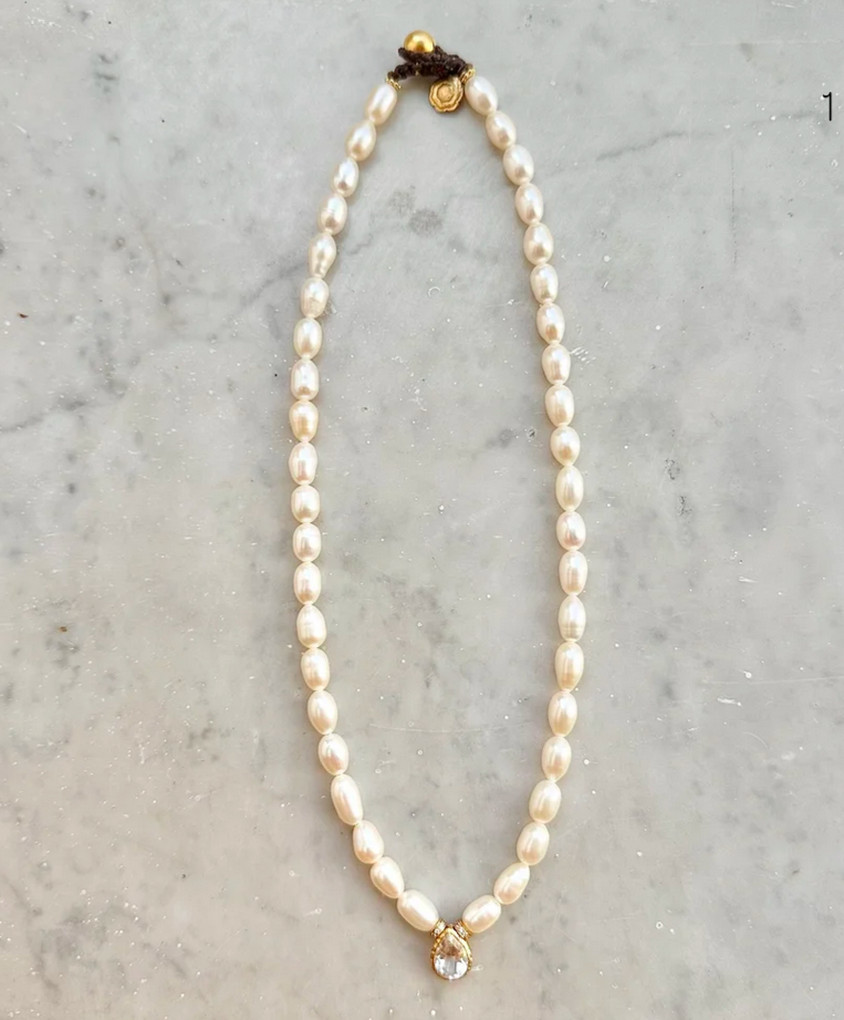 Collier en perles de culture et goutte en Topaze blanche