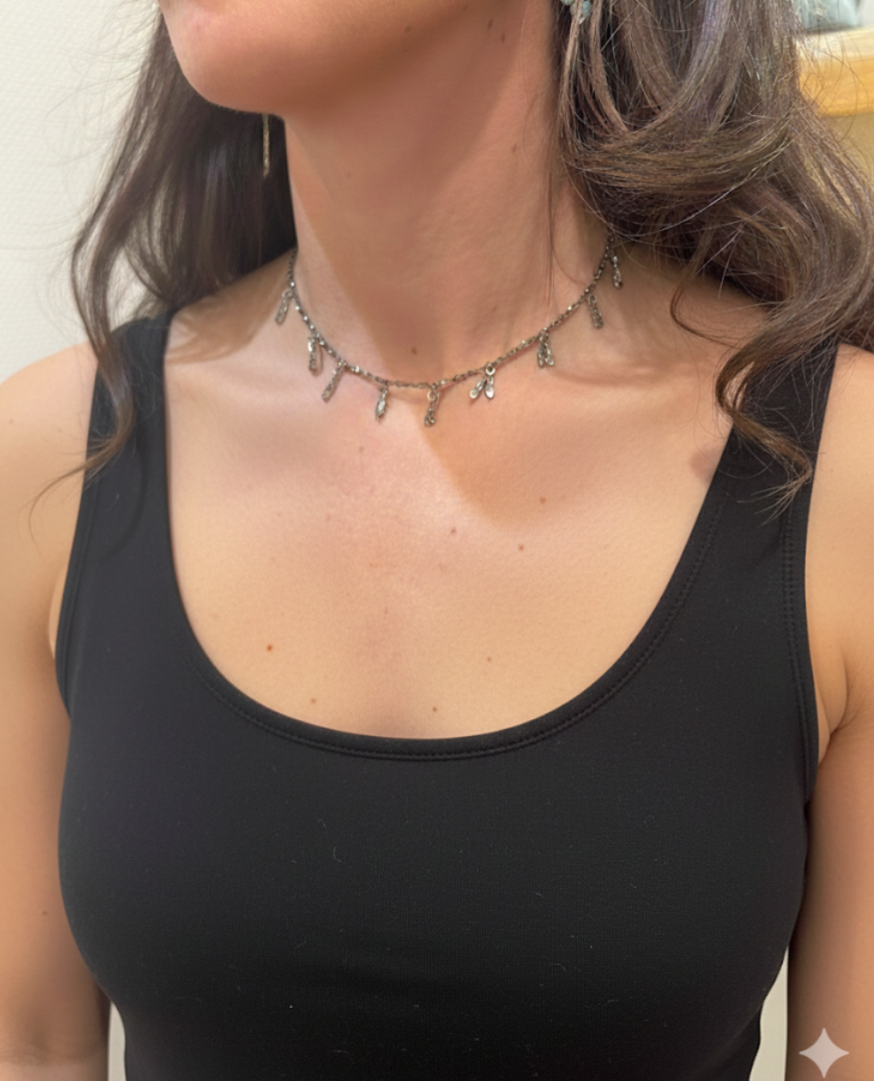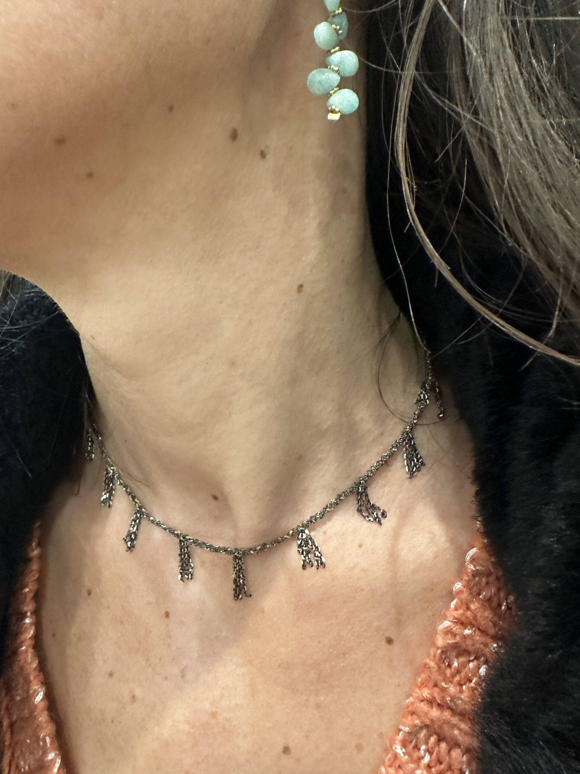 Collier à franges en fils d’argent recouverts de Ruthénium