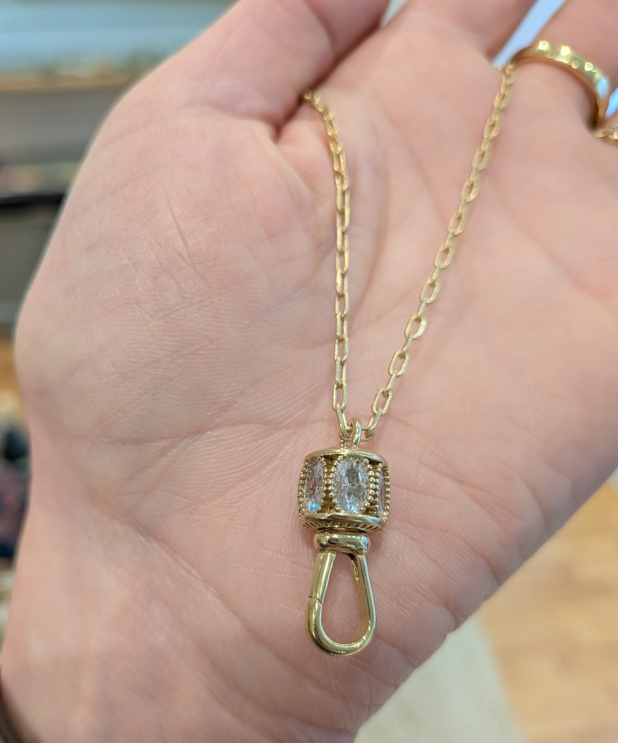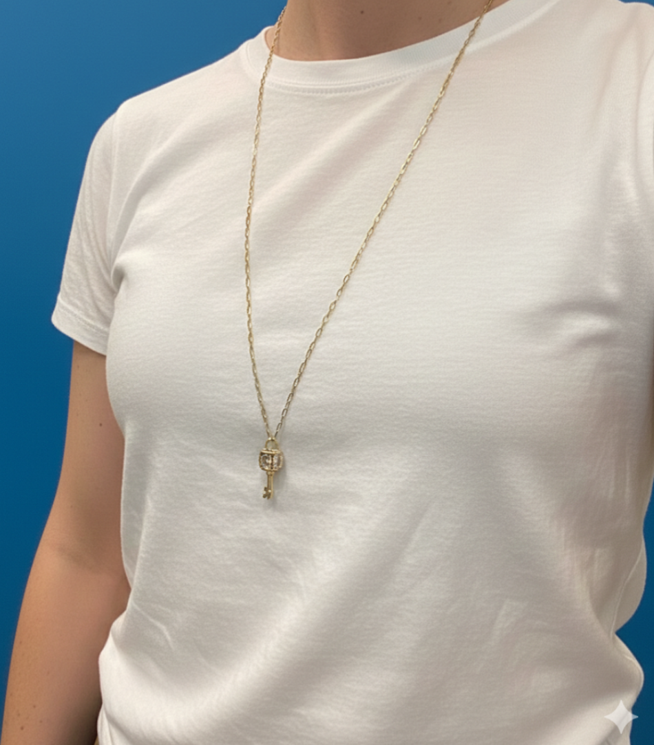 Collier sautoir mousqueton en plaqué or et cristal de zirconium