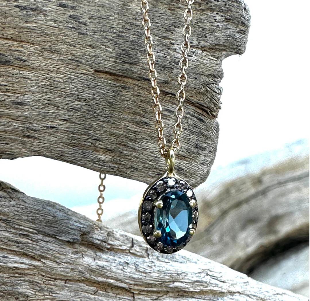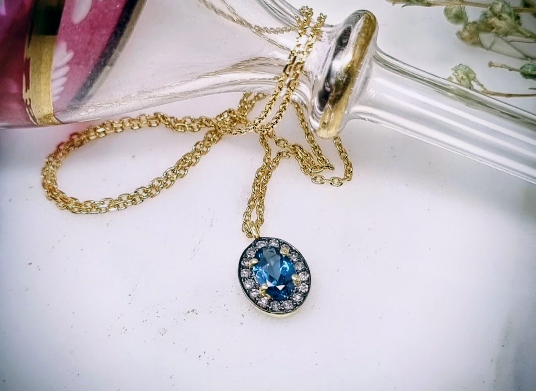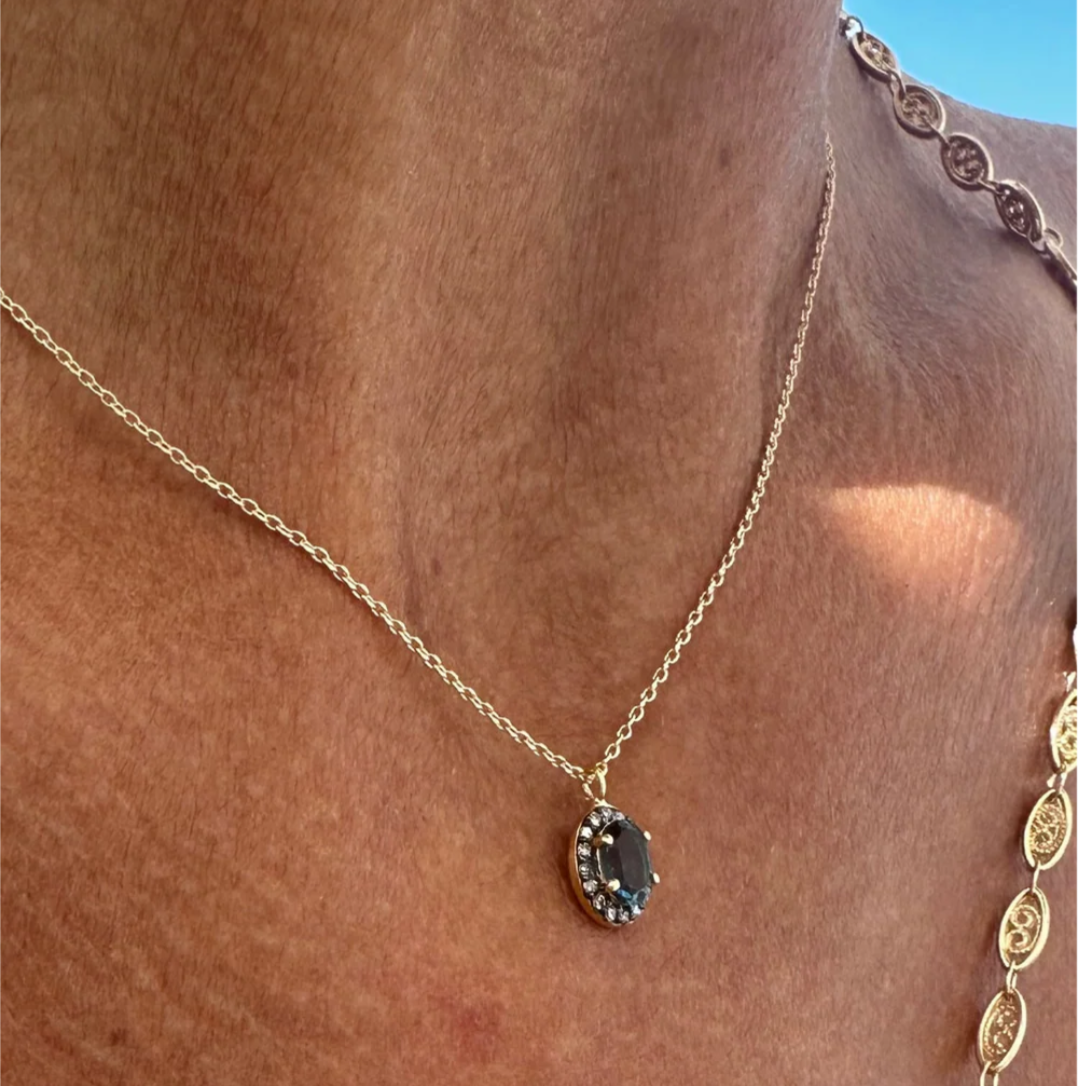 Collier pendentif en Topaze bleue sertie de diamants