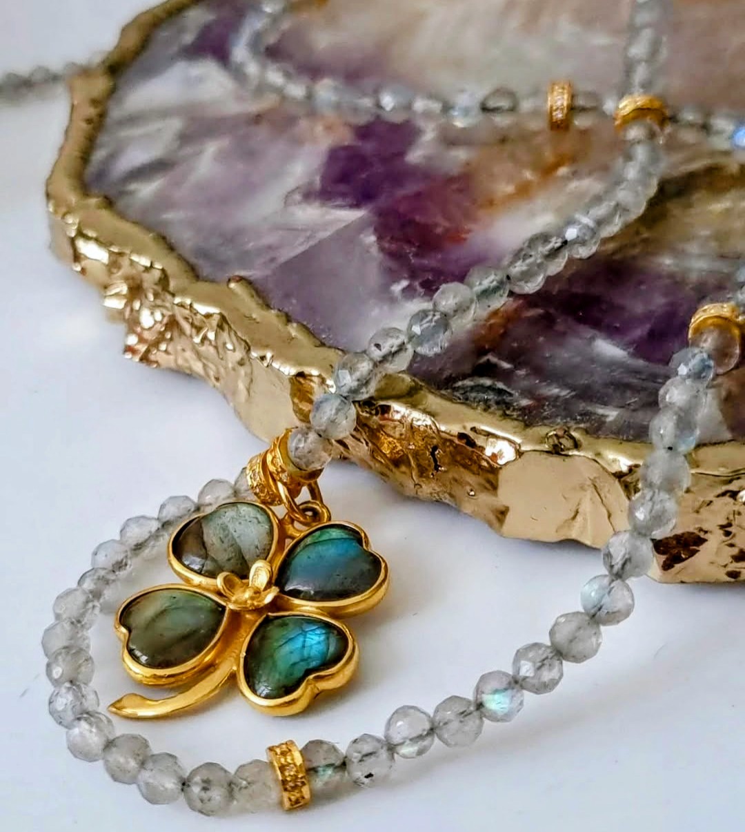 Collier en pierres naturelles de Tourmaline et médaille en Labradorite