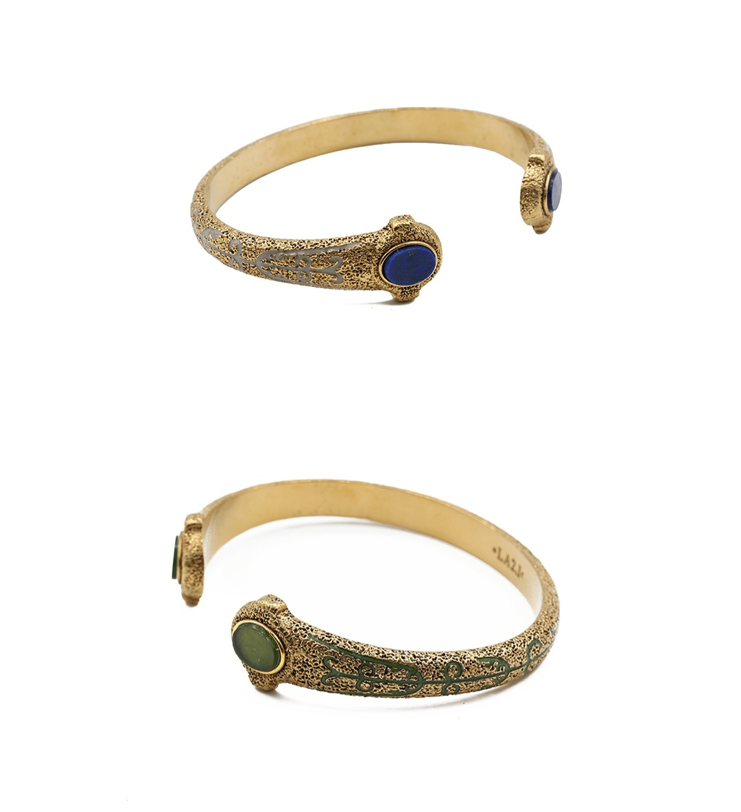 Bracelet jonc gravé et pierres naturelles de Serpentine ou Lapis Lazuli