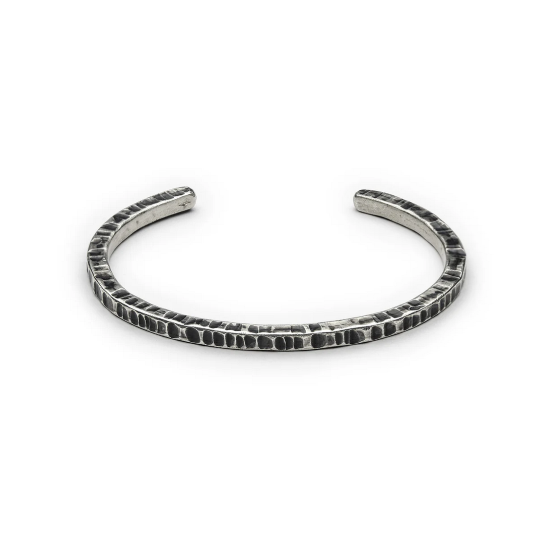 Jonc martelé fin de 18 cm en argent massif 925/1000 brut de fonte coulée dans un moule de sable